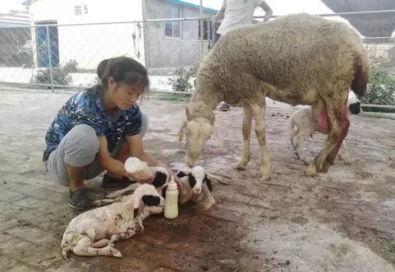 羔羊出生后,要尽早吃到初乳,吃饱初乳。初乳是母羊分娩后4~7天内分泌的乳汁。初乳中含有丰富的蛋白质(17%~23%)、脂肪(9%~16%)、矿物质等营养物质和抗体,对增强羔羊体质、抵御疾病具有重要作用。其中镁盐还有促进胃肠蠕动,排出胎粪的功能。据测定,初乳中含有较多的抗体和溶菌酶,还有K抗原凝集素,能颉顽特殊品系的大肠杆菌。初乳比常乳中矿物质和脂肪含量高1倍,维生素含量高20倍。要及时吃到初乳,还因为羔羊胃肠对抗体的接收能力每小时都在下降,出生36小时后,就不再吸收完整的带抗体的蛋白质大分子。所以,要保证初生羔羊在30分钟之内吃上初乳。对母性强的母羊,一般产后就能哺乳羔羊,但初产母羊或护羔行为不强的母羊所产羔羊及初生弱羔,均需人工辅助羔羊吃奶。方法是保定好母羊,然后把羔羊推到母羊乳房跟前,羔羊就会吃奶,反复几次之后羔羊就能自行吃奶了。对丧母的初生孤羔,应为其找保姆羊如产单羔或死了羔的母羊喂养。为避免保姆羊拒绝给奶,可把母羊的乳汁或尿液涂到羔羊头部和躯体上,以骗取母羊认仔。初生羔羊要跟母羊共同生活7天左右才能建立感情。在哺初乳的几天内,羔羊生长很快,平均日增重可达200~220克。