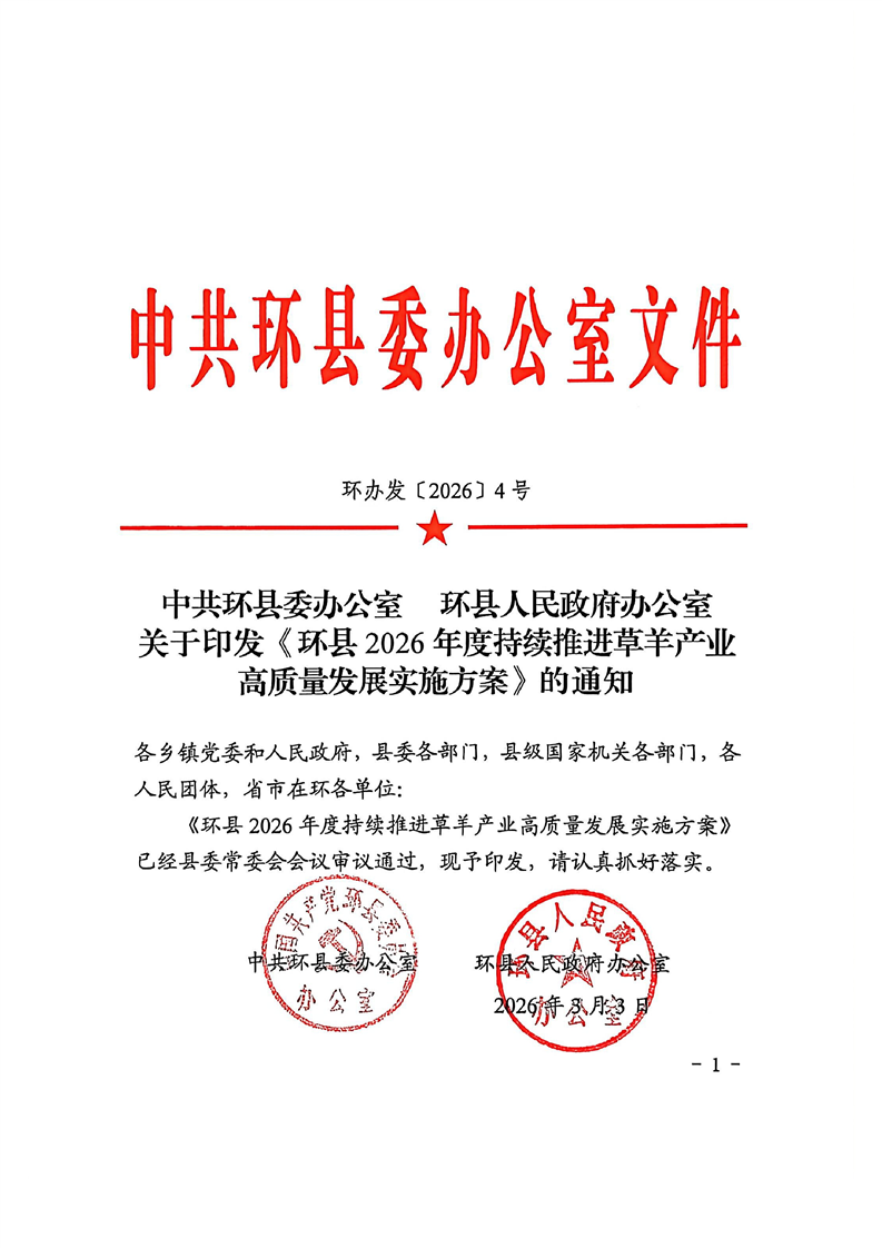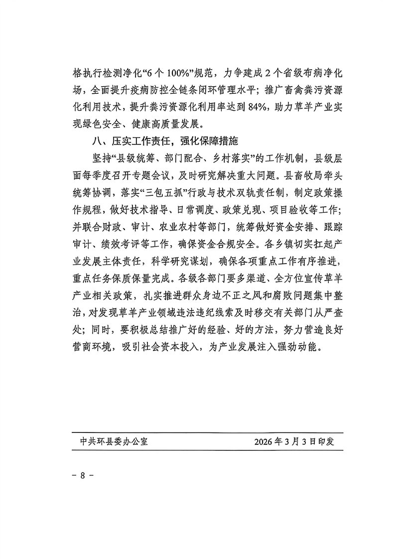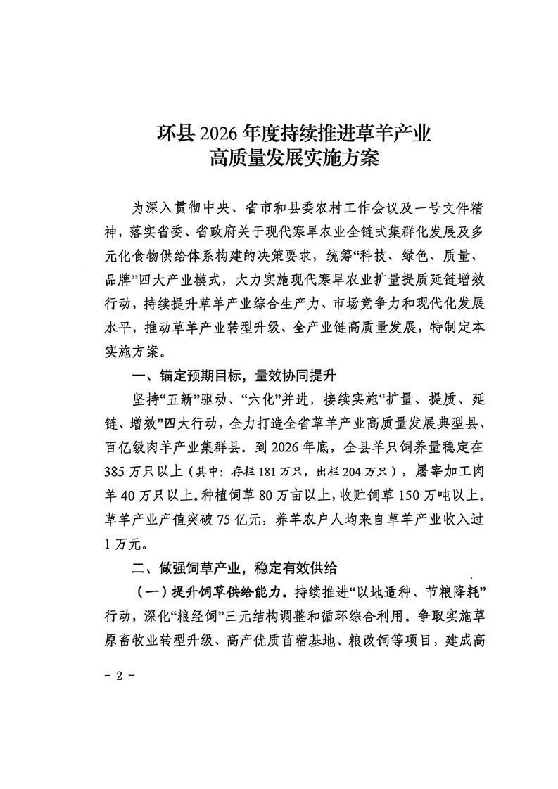 关于印发《环县2026年度持续推进草羊产业高质量发展实施方案》的通知